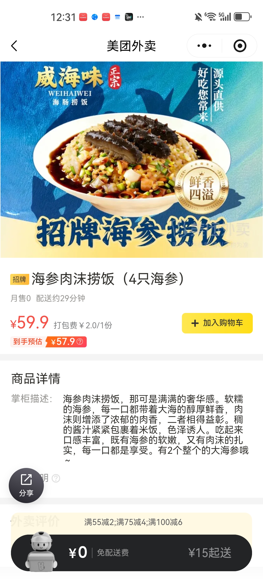 海参肉沫捞饭(4只海参)